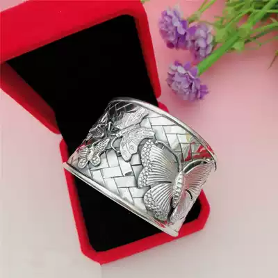 Wide version of butterfly love flower sterling silver bracelet foot silver butterfly ladies foot silver 990 handmade bracelet woven retro silver bracelet