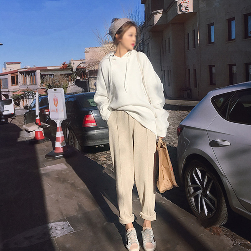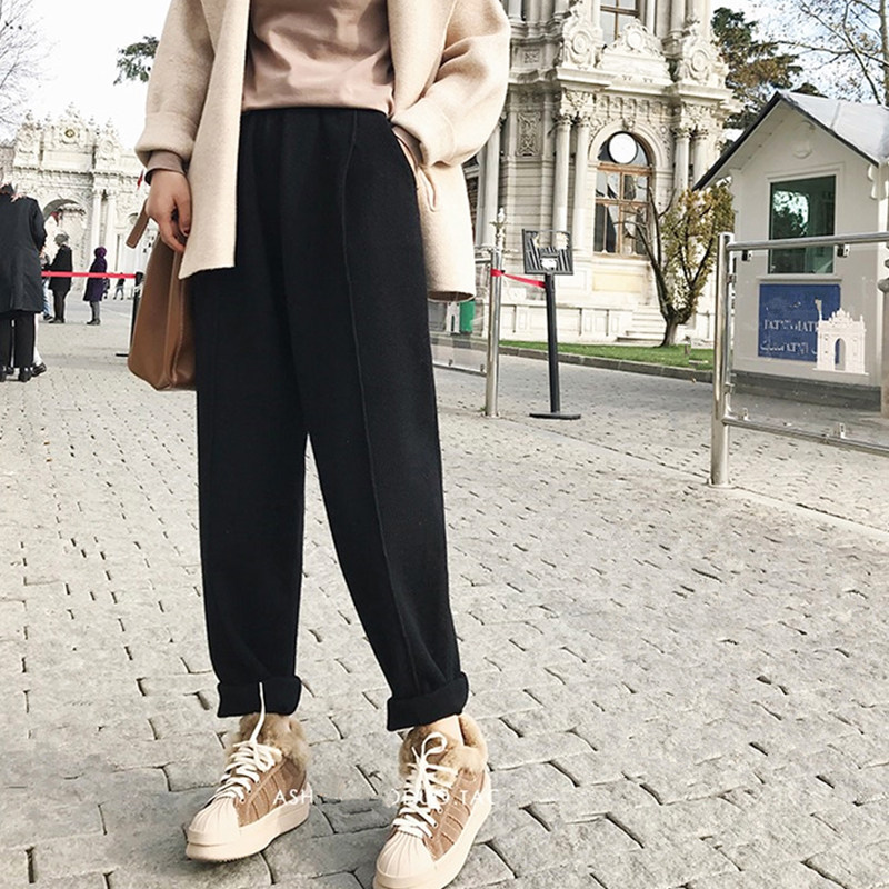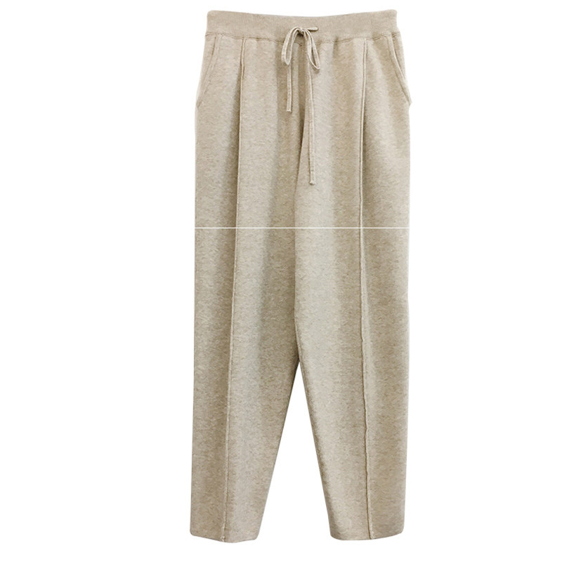 Large size width pants woman autumn winter 2020 new knitted granny pants Fat younger sister easy to thicken hair cropings pants
