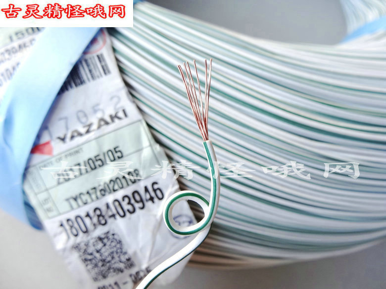 0.5 square Japan imported high temperature car power cord (white and green double color) car wire