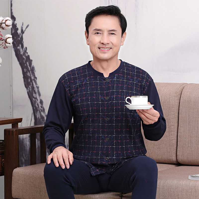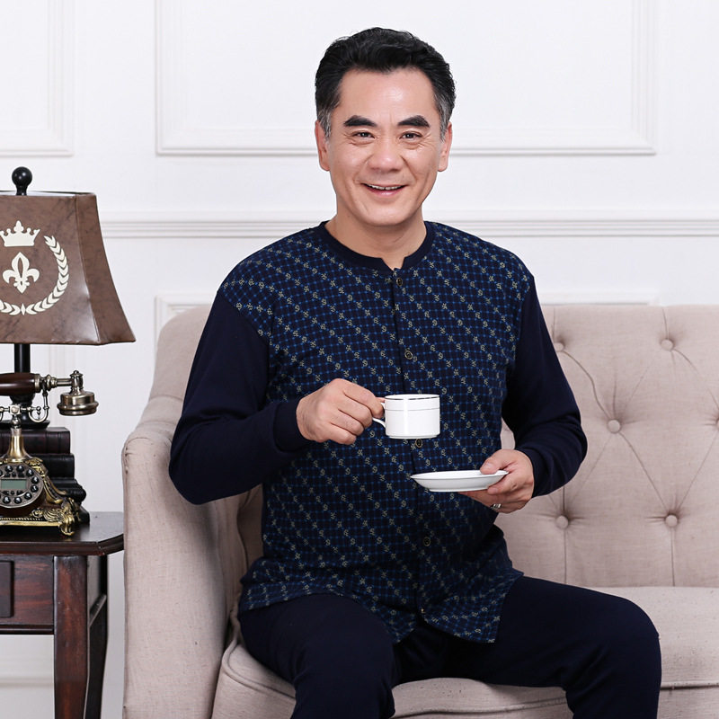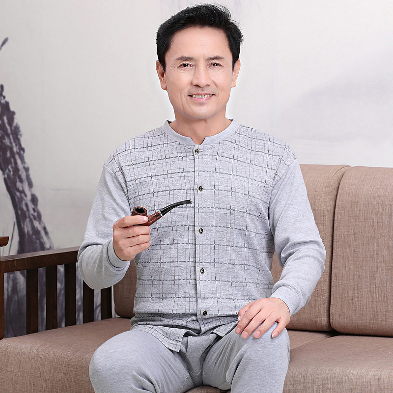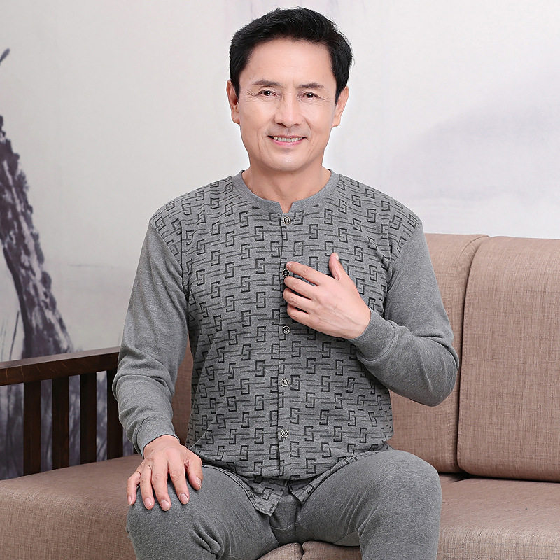 Middle-aged and elderly heating clothes, cardigan, men's autumn clothes, sanitary pants, 100% cotton sweater