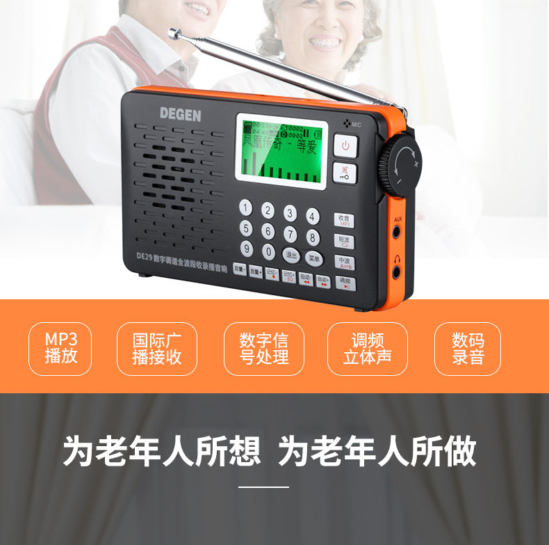 Degen Degen DE29 full-band radio elderly portable rechargeable semiconductor fm card recording MP