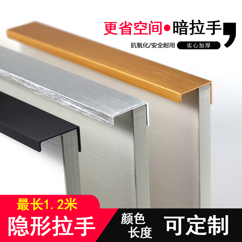 Invisible handle aluminum alloy wardrobe door concealed handle black lengthened modern minimalist drawer concealed pull the whole cabinet without punching