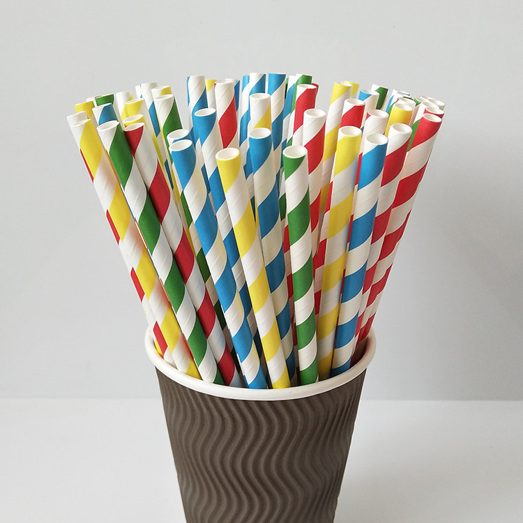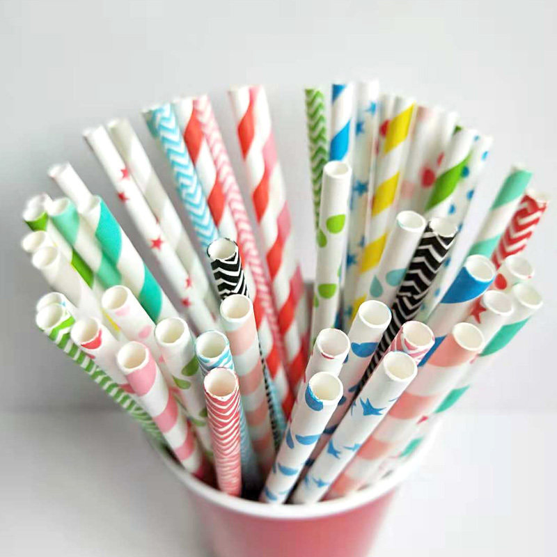 Party dessert table Creative dress up supplies Disposable striped paper straw color small fresh 100