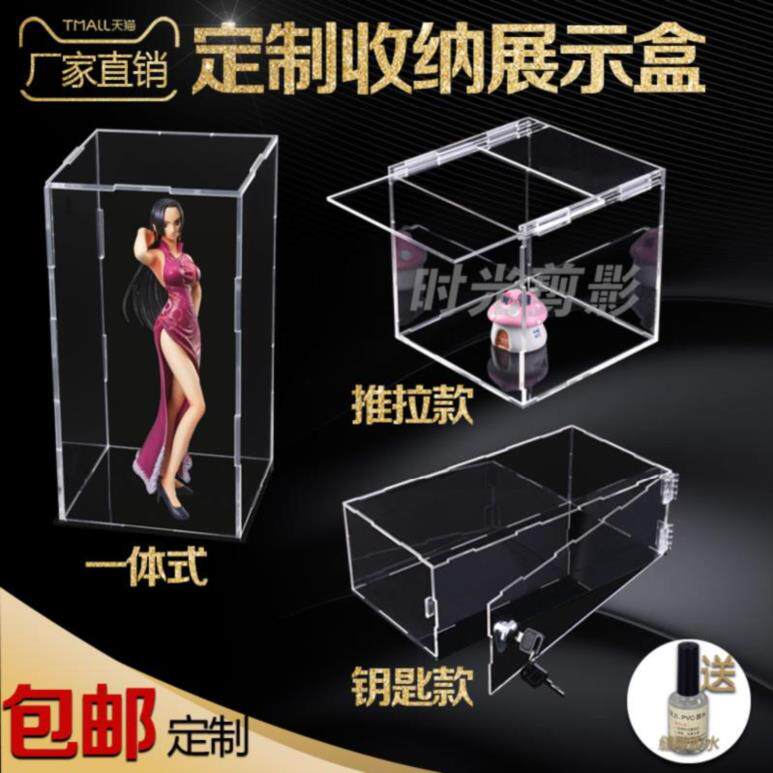 High transparent acrylic display box dust cover custom door open rectangular model pottery clay display box custom box