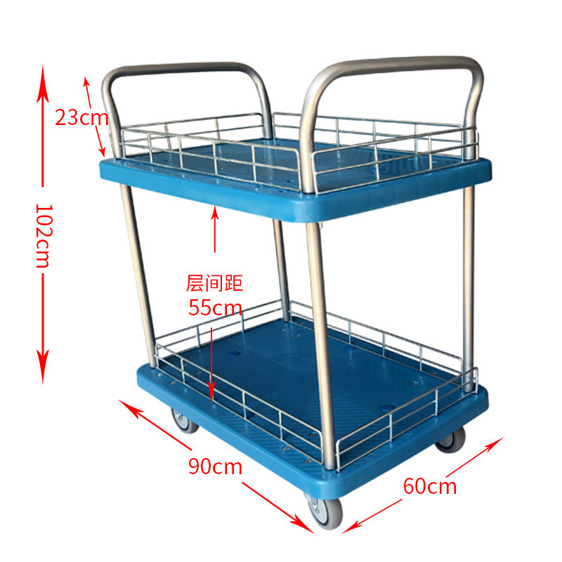 Fuhua Double-decker flatbed truck with handrail Three-layer multi-layer trolley Silent four-wheeled push cargo tool vehicle handling pull cargo