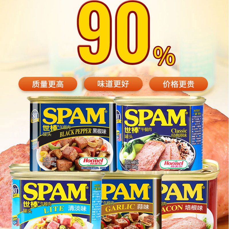 World Great Afternoon Meal Meat Classic Original Taste 340g * 4 Cans Light Taste Garlic Flavor Ready-to-eat Ham Hot Pot Bacon Pork Canned