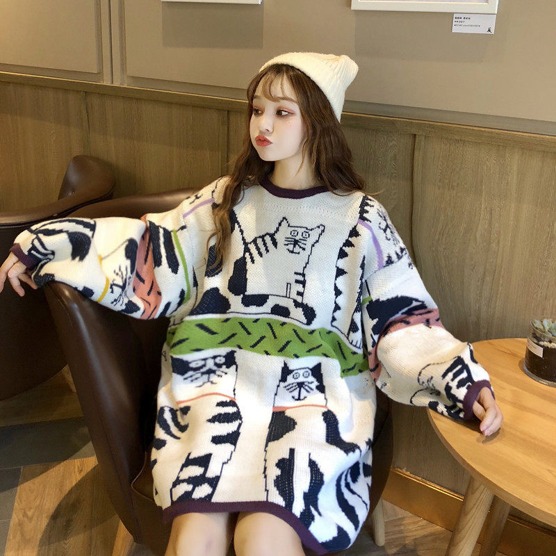Korean style lazy sweater women's 2022 new autumn and winter outerwear knitted loose mid-length pullover Japanese top trendy