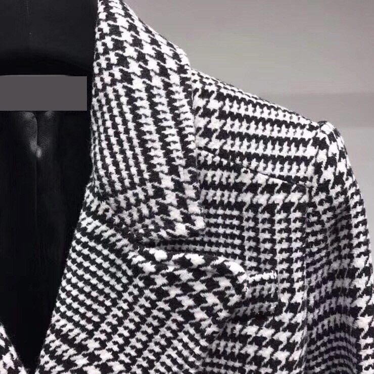 Mid-length coat 2022 autumn and winter Korean version temperament houndstooth slim fit and thin woolen woolen plaid small suit women