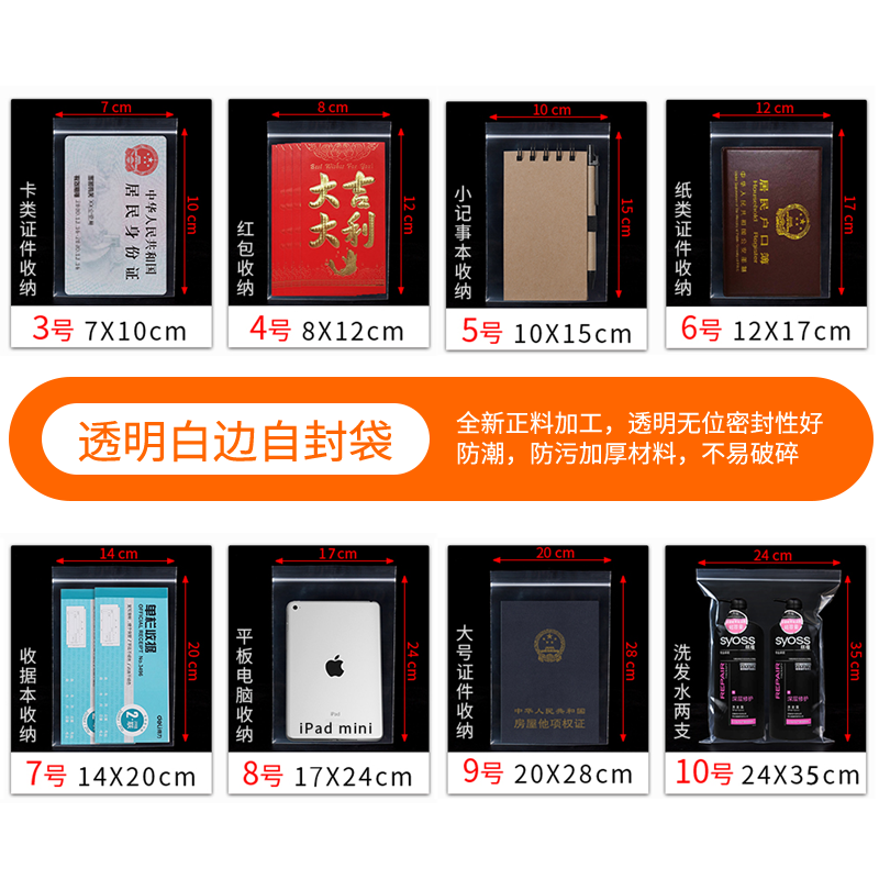 Self-proclaimed bag Small Number of plastic Sealed Bags Transparent Sealed Cashier Bag Large White Side Plastic Bag Bone Bag Food Packaging Office Stationery Food Grade Thickened Special