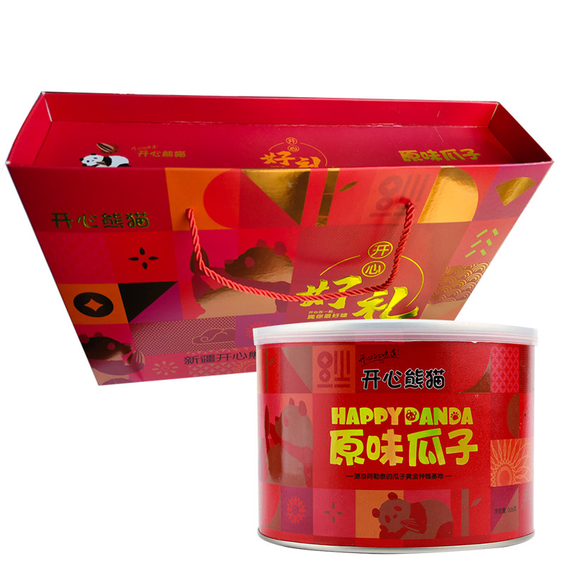 Xinjiang Happy Panda Original Taste Melon Seeds 206g Jar Original Flavor Fresh Fried Sunflower Seeds Nuts Fried Goods Snack Gift Box Dress