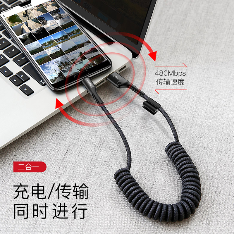 Beisi type-c spring car data line is suitable for Huawei telescopic storage glory millet apple 11x mobile phone 8 charging line short fast charging p20 extended iPhone12 charging line 13