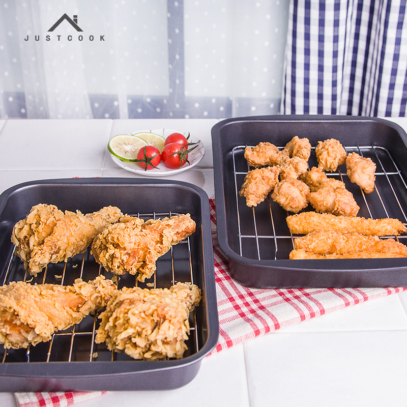 BBQ food pan with oil filter rack tempura fried oil filter pan without sticking oil pan drying tray iron plate household