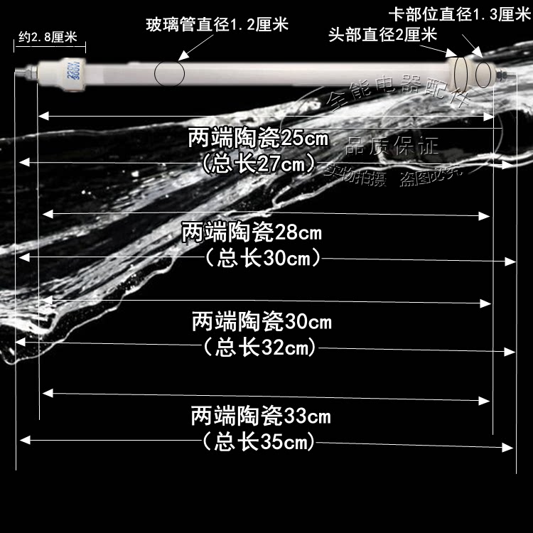 Two ends ceramic 25cm (total length 27cm) 400W ends ceramic 28cm (total length 30cm) 400W ends ceramic 30cm (total length 32cm) 400