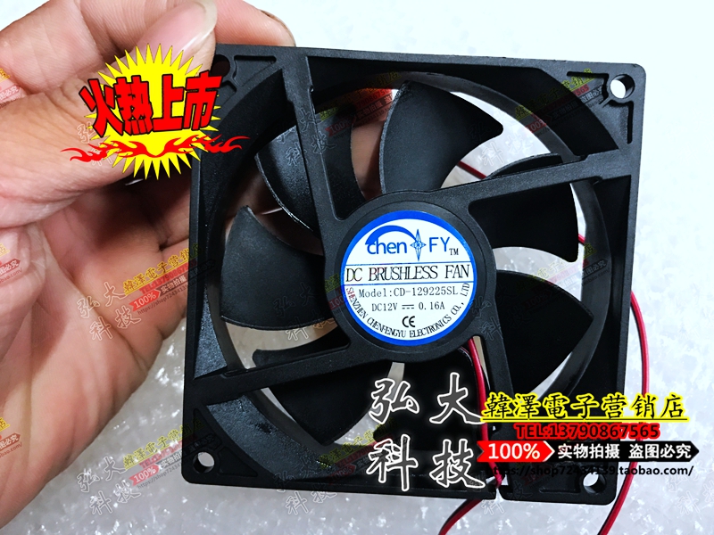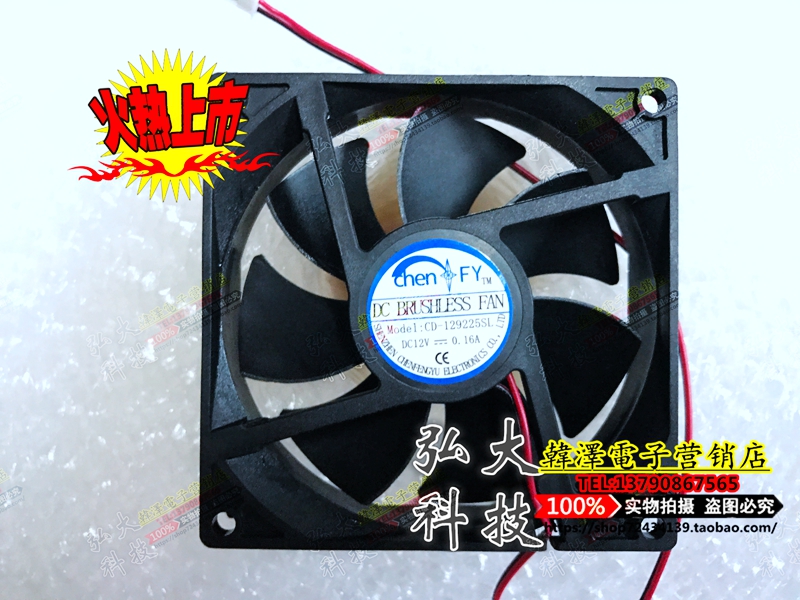 New spot CD-129225SL DC12V 0 16A silent fan 2-wire fan 90*90*25MM