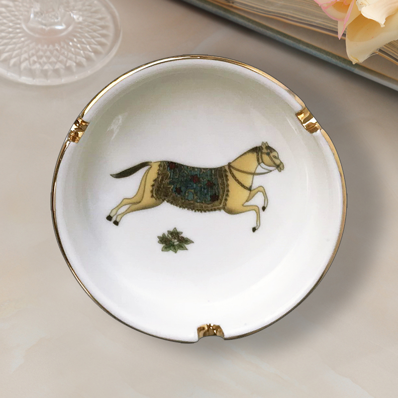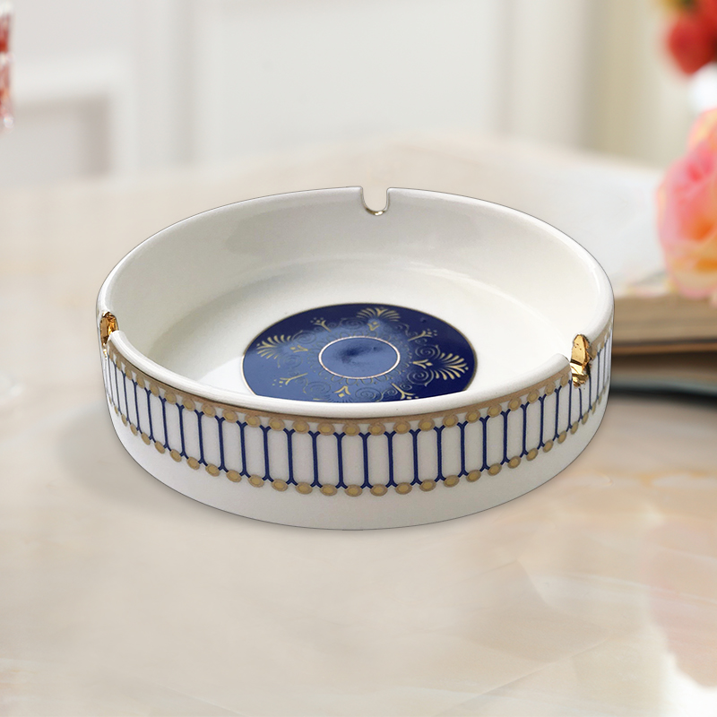 European style round ceramic small ashtray Creative personality Men's coffee table Bedroom desk Living room home decoration