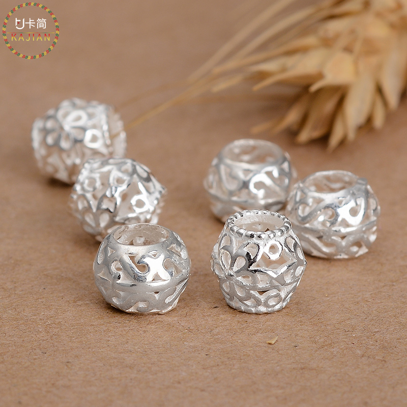 Card Jane 925 Silver Accessories Hollowed-out Road Pass Diy Red Rope Handmade Ornament Accessories Wear Beads Handmade Sepal Beads Accessories