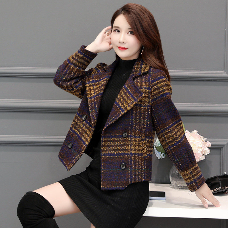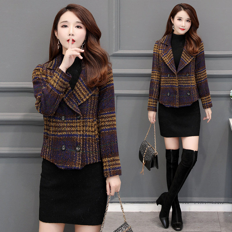 Wool coat women's short spring and winter new 2021 Korean version of the wild popular small tartan coat