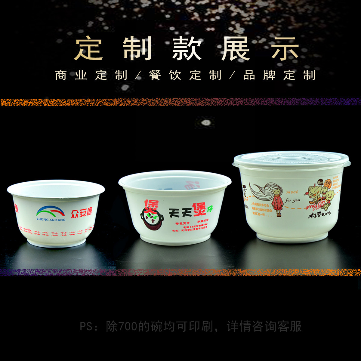 Disposable plastic bowl tableware round thickened with lid household packaging box printing trademark custom LOGO