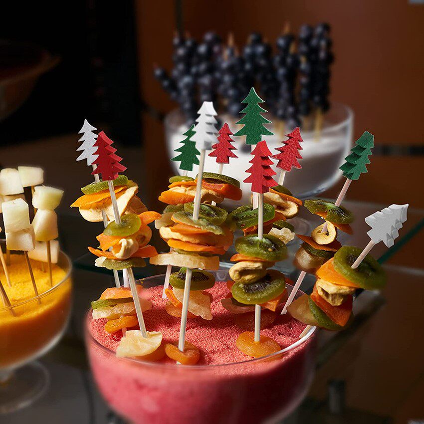 Bamboo Fruit Food Fork Sticks christmas tree Christmas tree decoration bamboo sticks