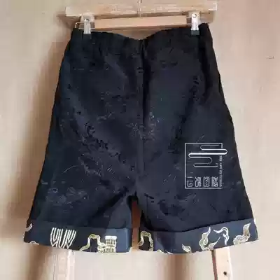 Cloud ornaments totem original design women's boots pants new ethnic wind plate gold embroidered old satin Joker Capri pants Black