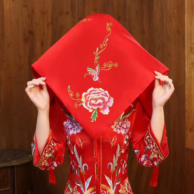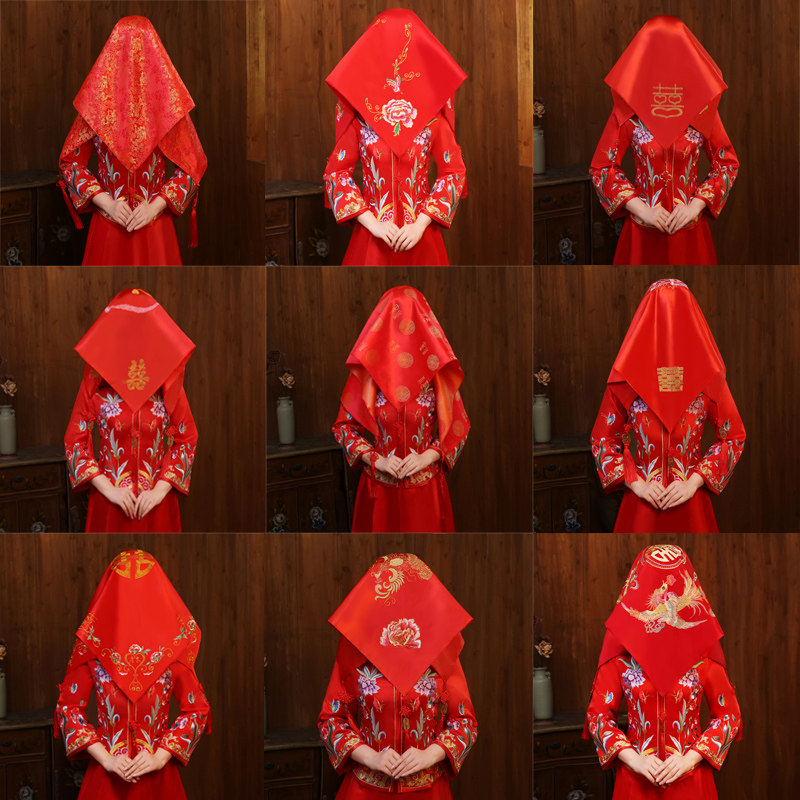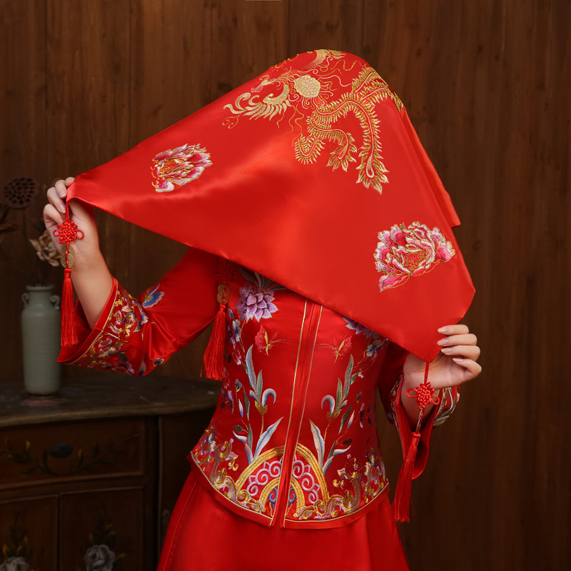 Red cover head new wedding cover head yarn wedding show and cover head yarn oversized red dragon phoenix Sukippa
