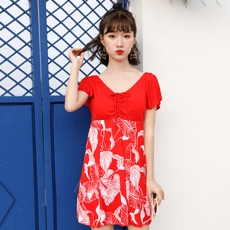 One-piece swimsuit women's Korean version of the skirt conservative 2018 new hot spring mother's belly cover thin women's bathing suit