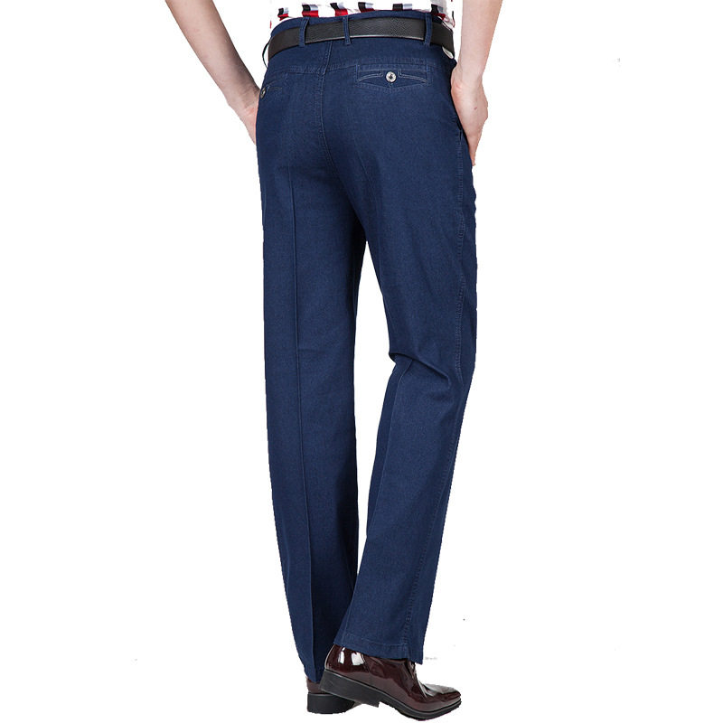 Middle-aged men's jeans Woodpecker spring and summer thin section high waist loose stretch business casual denim pants Dad