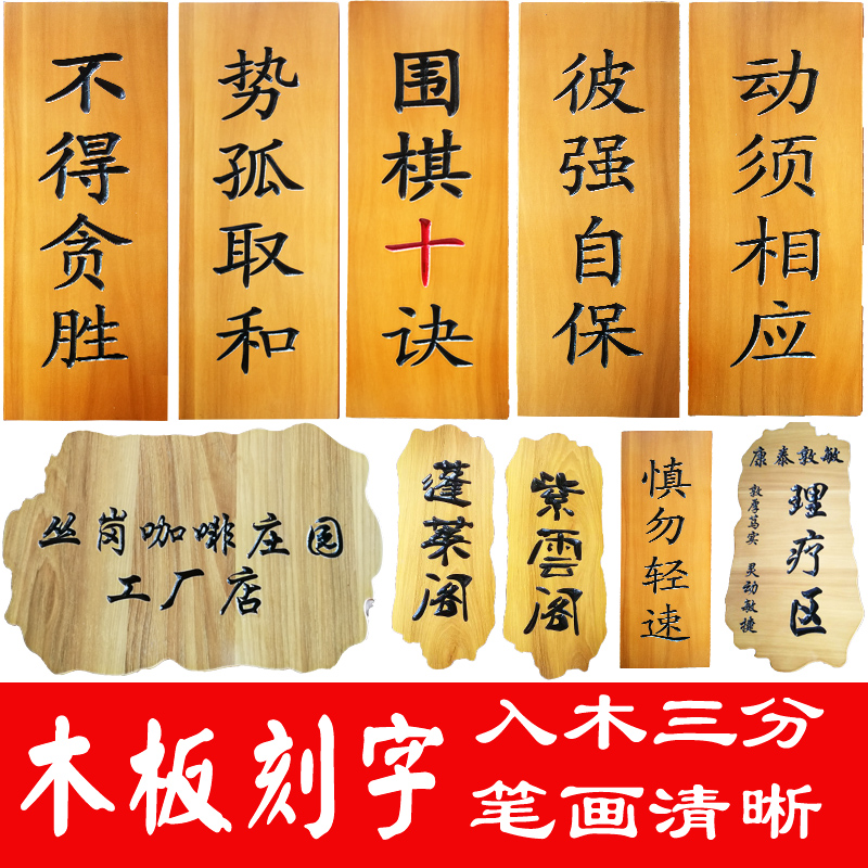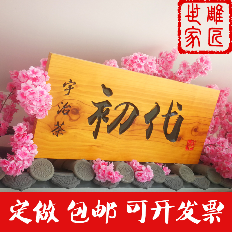 Chinese-style solid wood plaque custom-made door shop teahouse tea shop opening signboard wood carving wood lettering