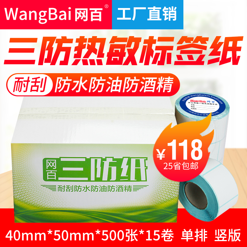 Net 100 40 * 50 * 500 sheets of whole boxes 15 volumes of thermo-sensitive label paper San-proof Waterproof Alcohol Oil More Protective Print Machine 40X50X500 Zhang Barcoding Tags Electronic Scale Jewelry Sticker two-dimensional paper