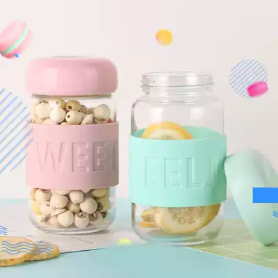 Cartoon portable glass transparent accompanying cup creative household cup Cute student water cup