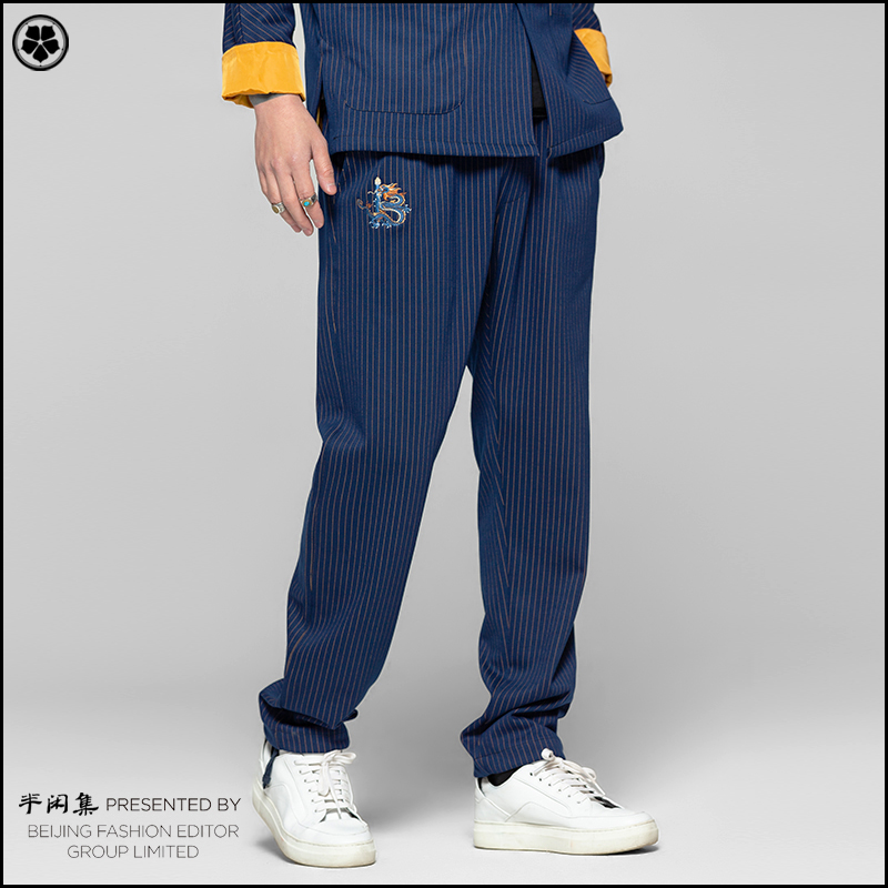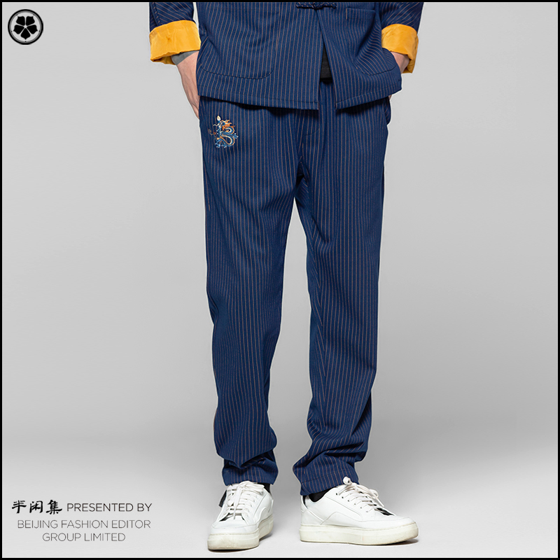Semi-casual set striped dragon embroidery casual pants summer and autumn new trendy men fashion hip-hop thickened Chinese style men's trousers