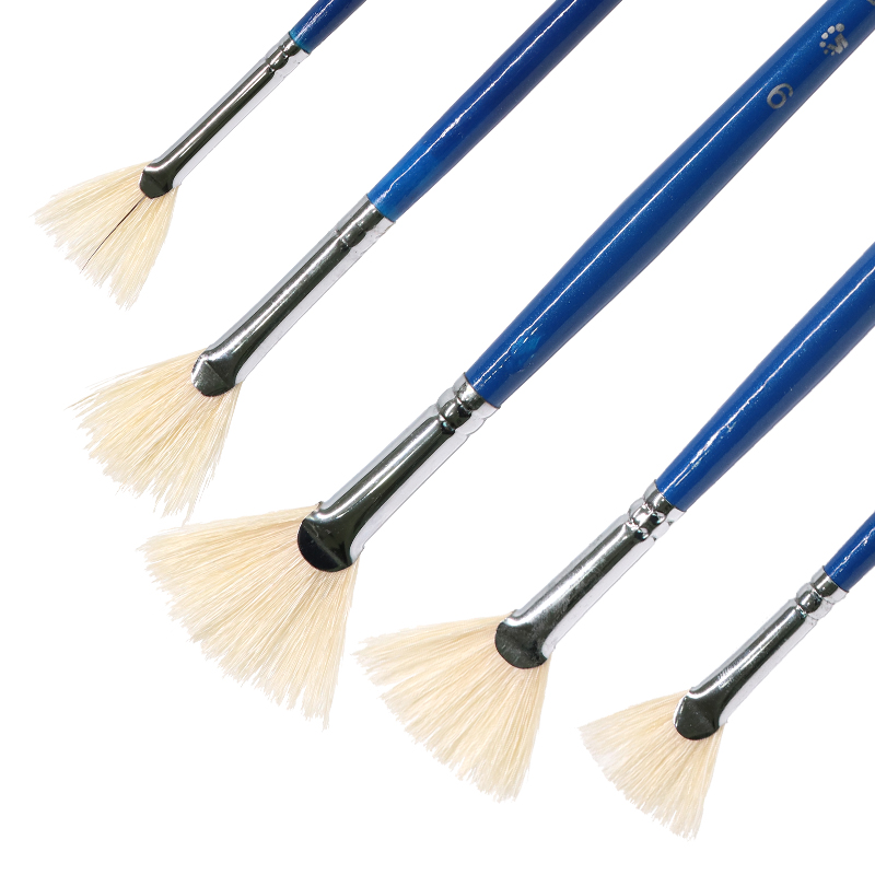 Wired Beautifully Blue Long Pole Advanced Pig Mane Paintbrush Color Exam Kit Pen Solid Wood Pen Rod Fish Tail Sector Pen Beginner Student Art Examination Sketching Brush Painting with pen oil painting Acrylic Paint Hand-painted paintbrush