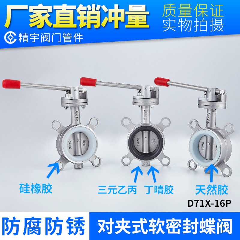 304 stainless steel wafer butterfly valve D71X-10P new high temperature silicone PTFE manual flange soft seal valve