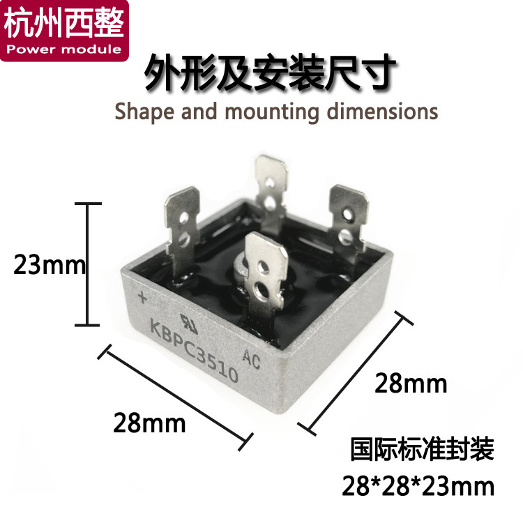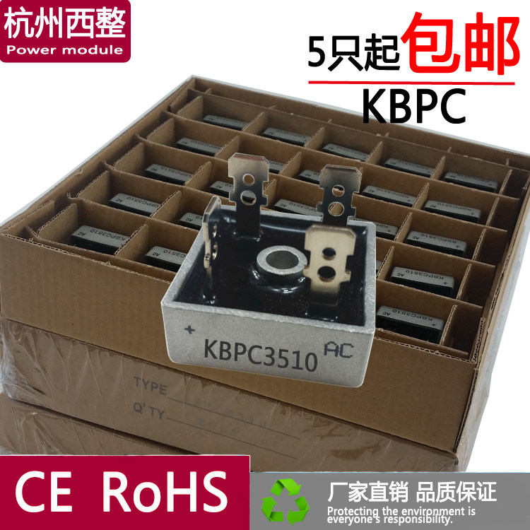 KBPC3510 single-phase rectifier bridge 35A 1000V rectifier bridge stack foot current voltage copper foot Hangzhou West complete