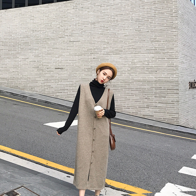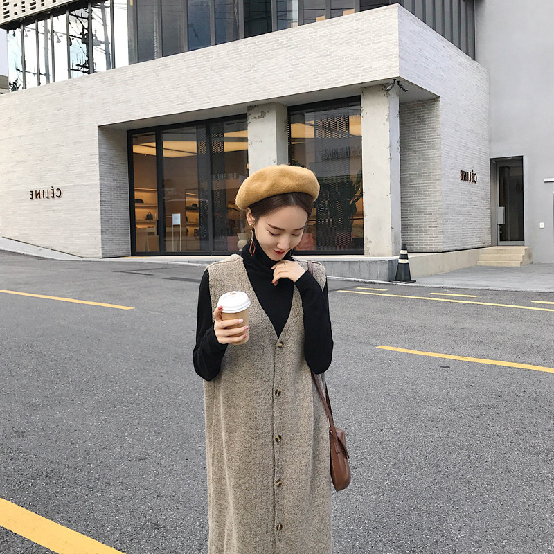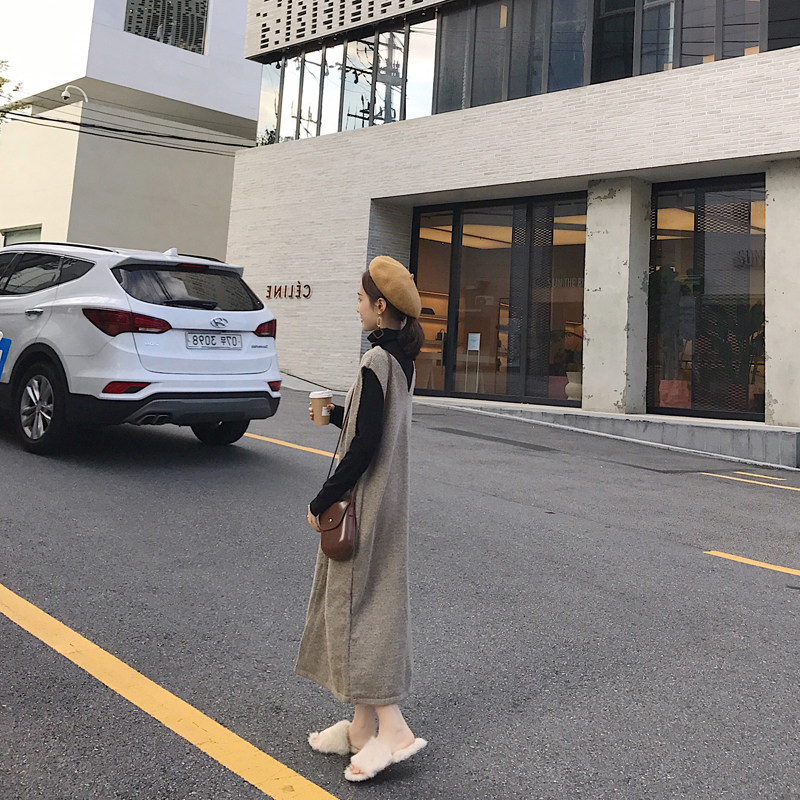 Retro long dress French style over kneecap two-piece suit autumn and winter French small crowdvest first love wind scarves