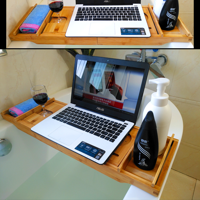 Bathtub rack mobile phone rack bathtub shower bamboo double tray table board bath storage towel