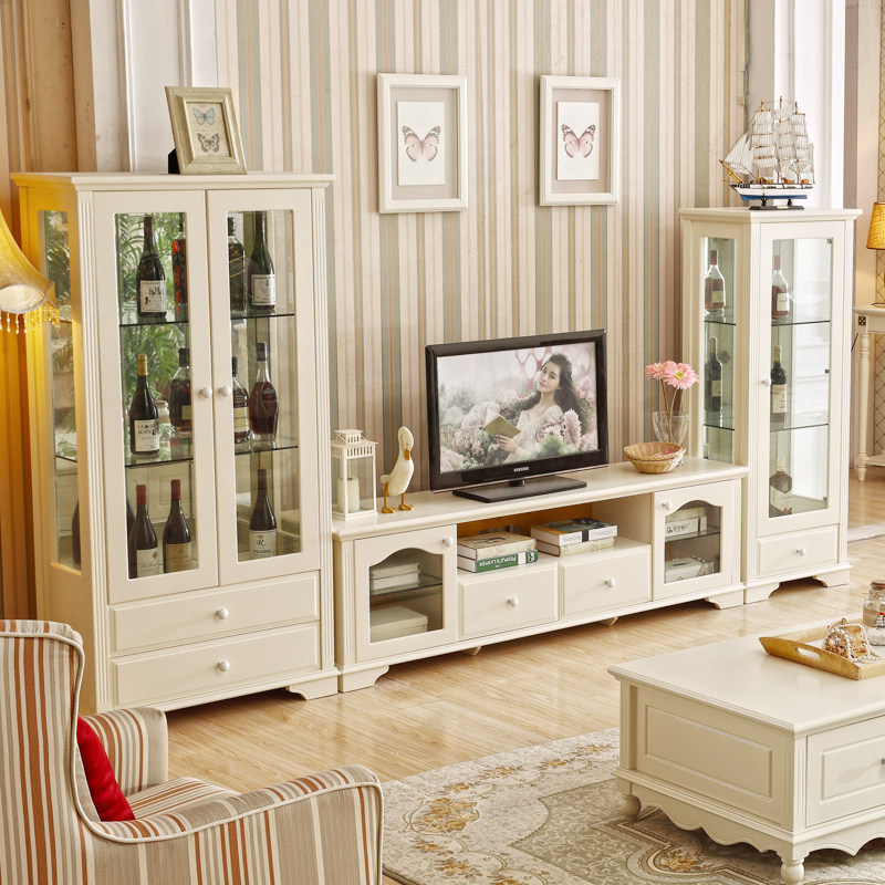 Han Style TV Cabinet Tea Table Combined Wine Cabinet Fields Garden Modern Minima American Small Family Type Living Room Solid Wood Containing Ground Cabinet