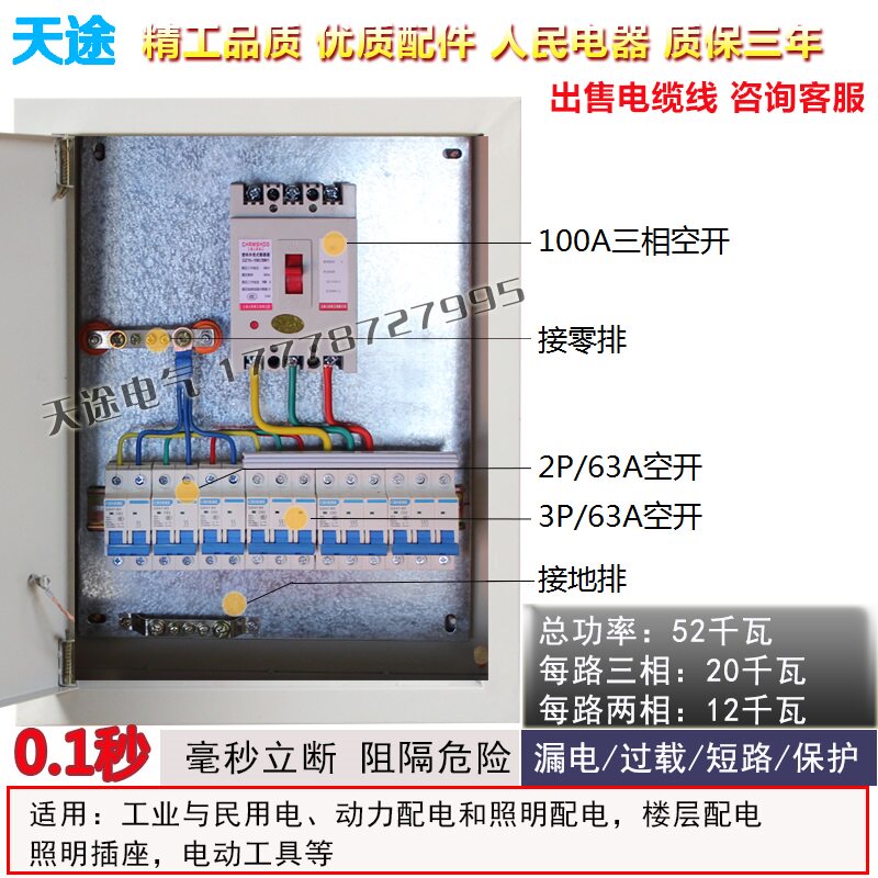 Site temporary three-level distribution box Complete set of leakage switch rainproof box Surface mounted wall-mounted wall box 400x500