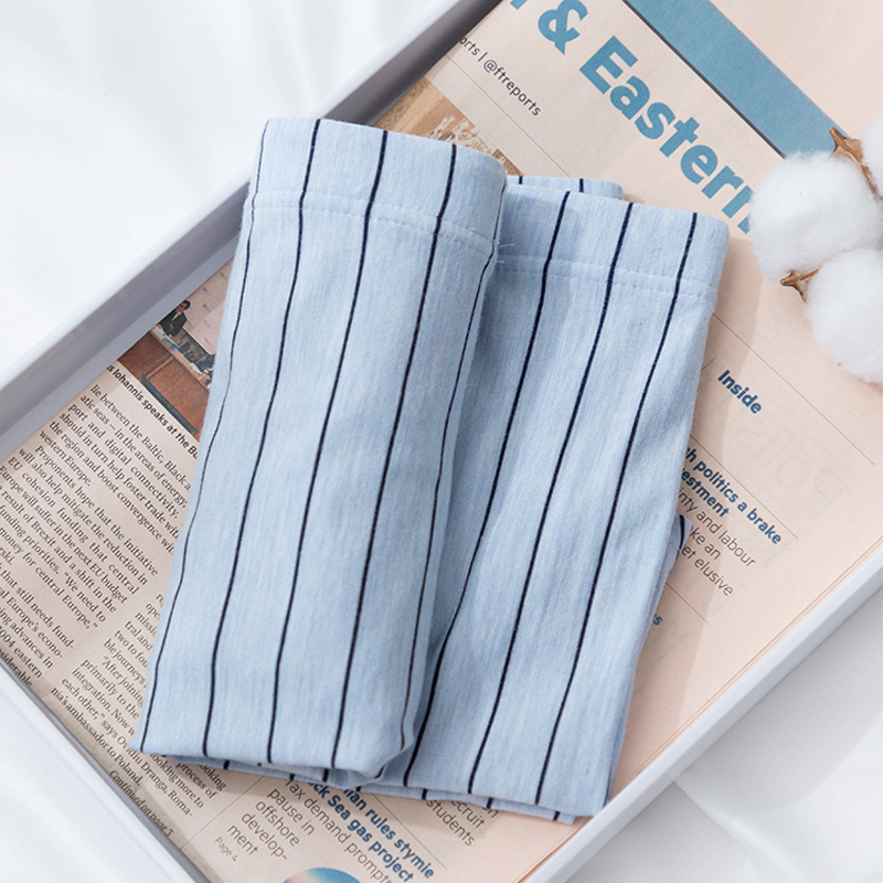 Striped large size soft and comfortable light blue breathable modal men's boxer briefs mid-waist boxers N002