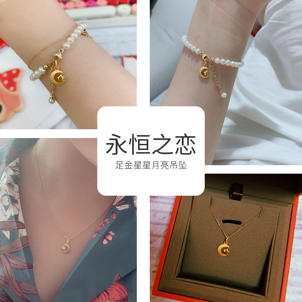 Zhou Dengsheng gold pendant women's gold star Stars Moon Pendant when it is still worthy of necklace gold pendant Festive Gifts