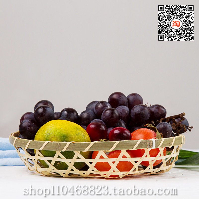 Bamboo woven goods consignment plate round bamboo basket handmade storage basket tableware steamed bun basket creative snack fruit basket