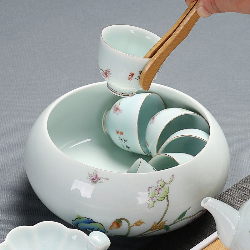 Shadow glaze tea wash blue and white porcelain large Cup wash ceramic tea set pen wash tea ceremony accessories flower pot fruit plate tea cup water