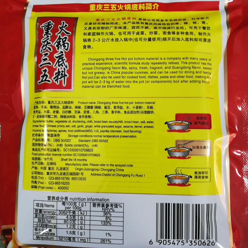 Three-five hot pot soup base 300g * 5 bags Chongqing hot pot ingredients Sichuan spicy hot skewers seasoning old hot pot soup base