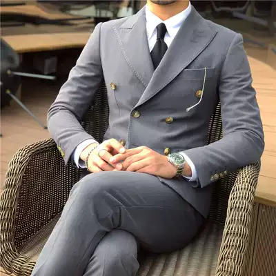 Mr Lu San business casual men's slim-fit double-breasted suit suit two-piece Korean version of the British formal suit
