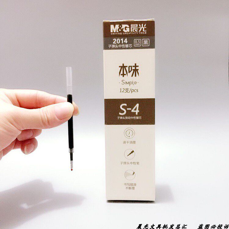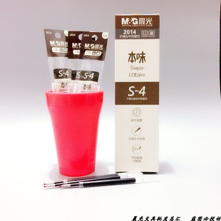 Chenguang stationery 2014 Benwei S-4 series quick-drying press bullet neutral refill 0 5mm water pen refill black