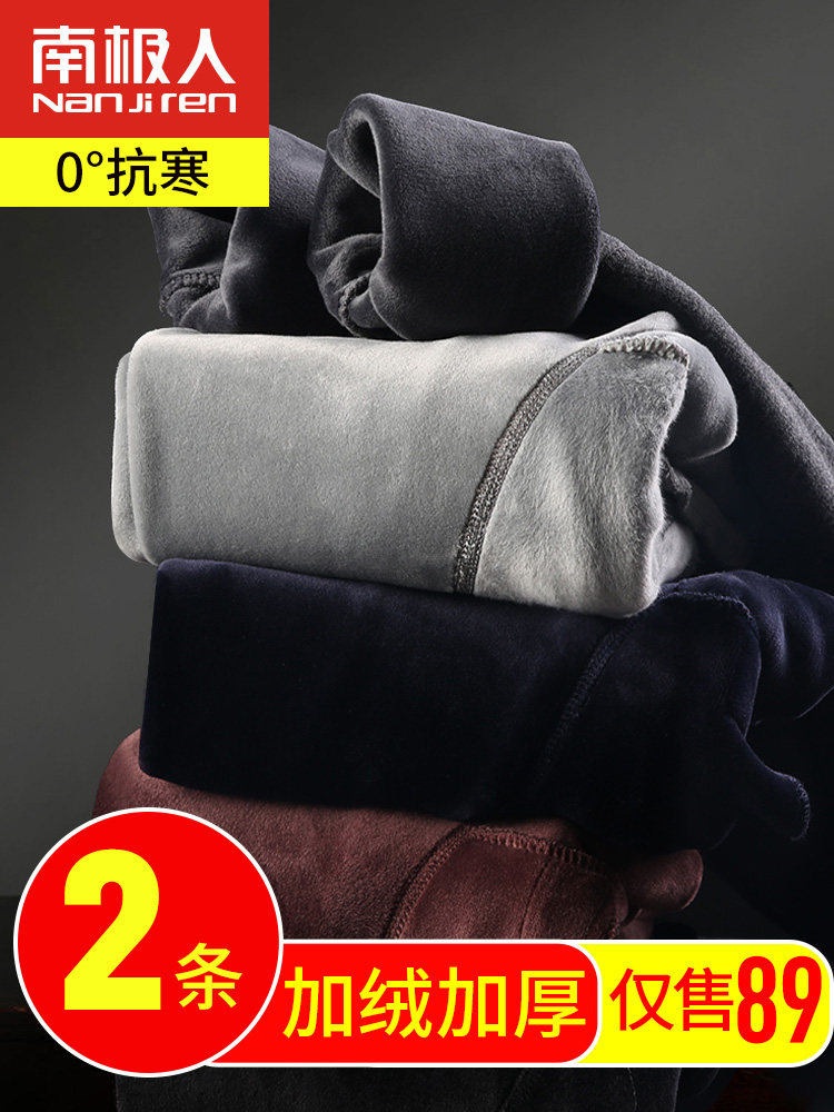 South Pole Warm Pants Men's Sanitary Pants Glint Thickened Autumn Winter Workout cotton wool line pants to wear bottom suede pants single pants
