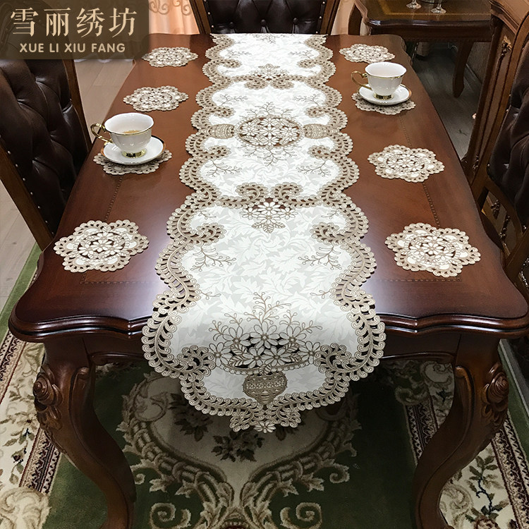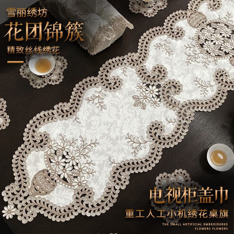 Table flag TV cabinet cabinet of drawer coffee table mat fabric embroidery light luxury European American Chinese tablecloth simple flower cluster