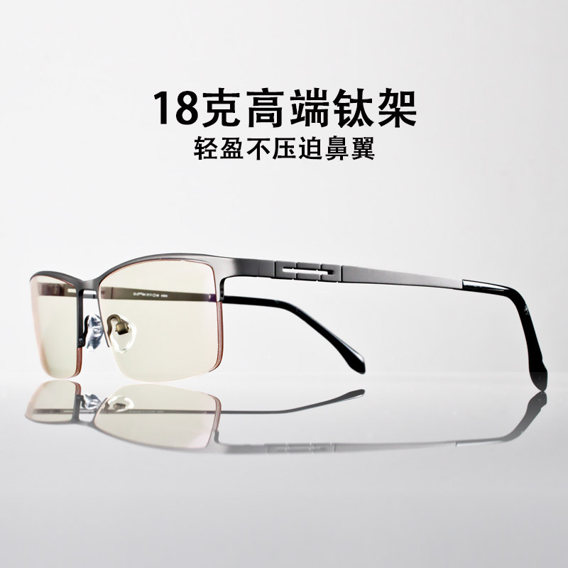 (Soot half frame) + pure titanium + anti-blue light anti-radiation anti-fatigue + flat glasses 1901