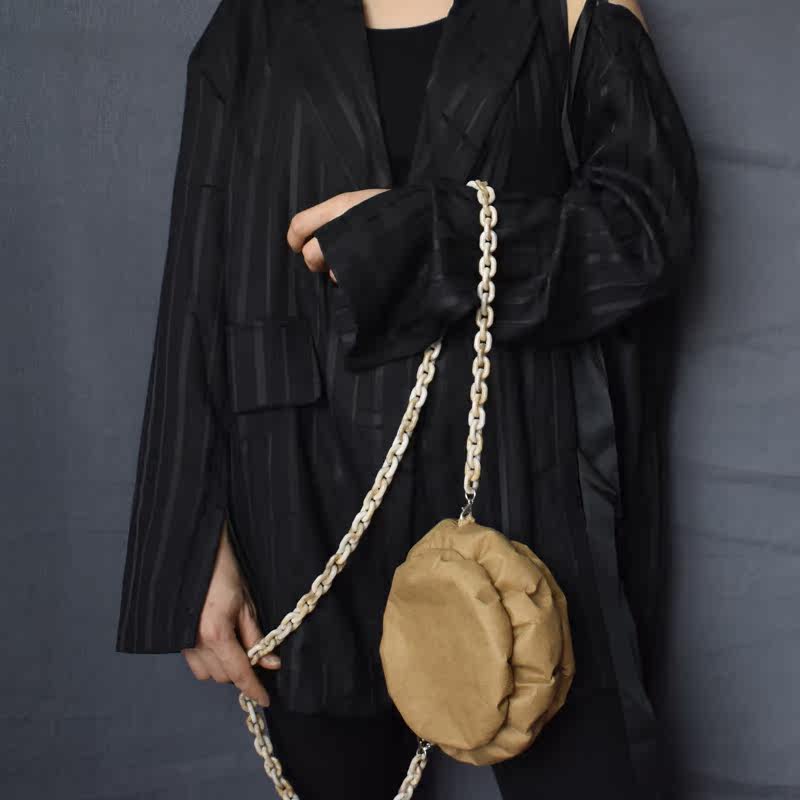 ZGUI Paper Ghost Original Design Kraft Paper Small Crowdsourced Round Single Shoulder Inclined Satchel Bag Retro Chain Flowers Bag