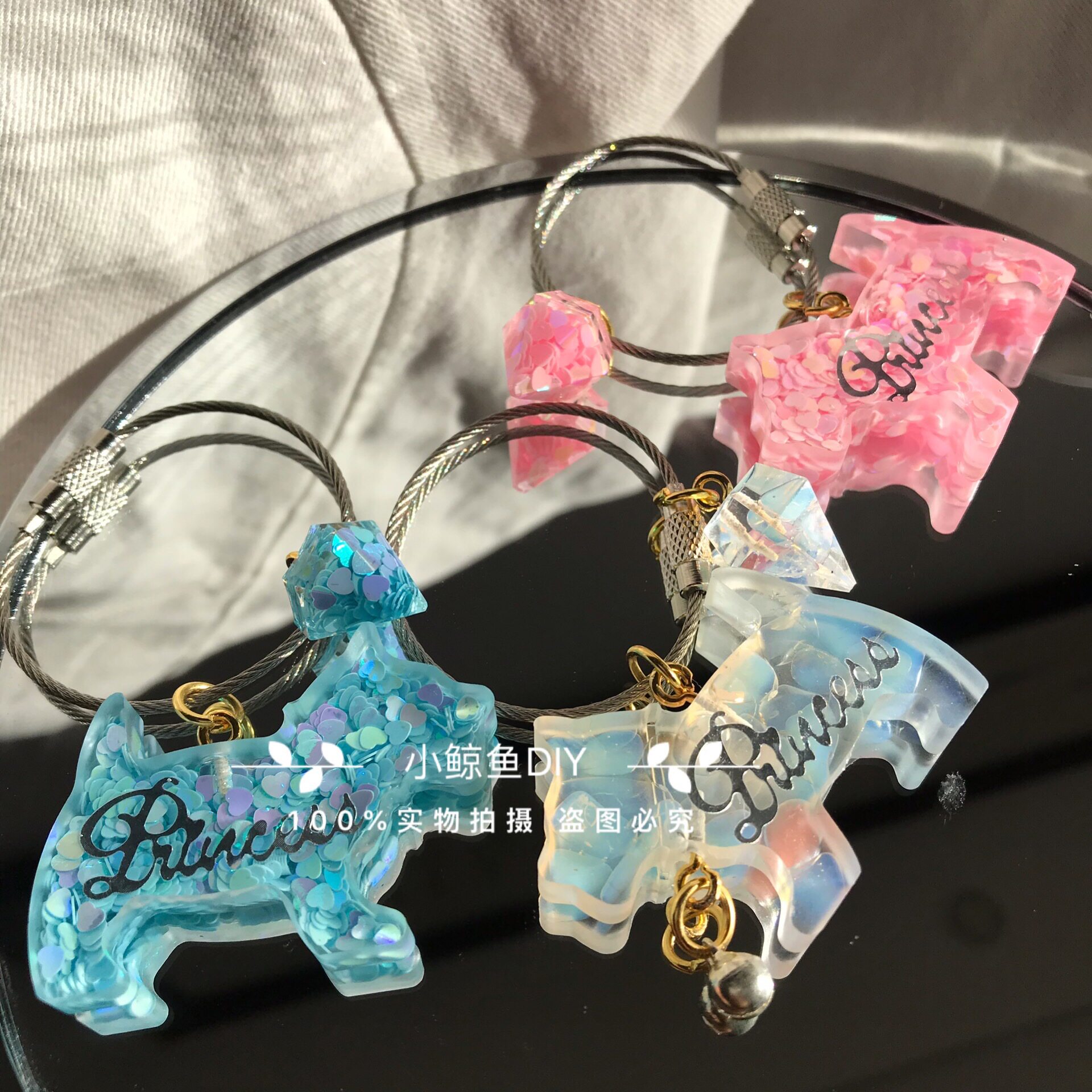 Small whale diy glue metal key chain bag gold and silver stars love hardware key chain making accessories materials